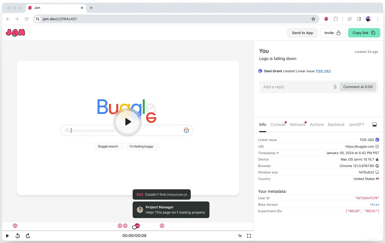Recording Links builds on Jam’s core extension and more-recent Jam for Customer Support (Intercom) products. Both of these are built on Jam’s core object model and capture stack, which allow us to deliver a consistent debugging experience in our own app and the others we integrate with.