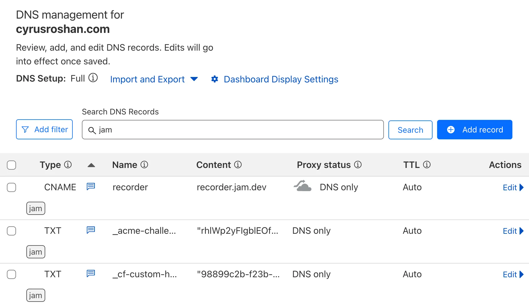 We also wanted to make sure that Jams recorded on your pages only get sent to you—you don’t want someone from evil.com to spoof an example.com Recording Link and steal the privileged network and console logs from an unsuspecting user.