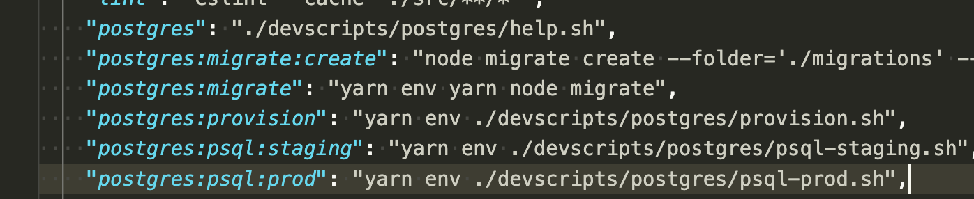 migrate:create create new migrationThe package.json scripts looked something like this: